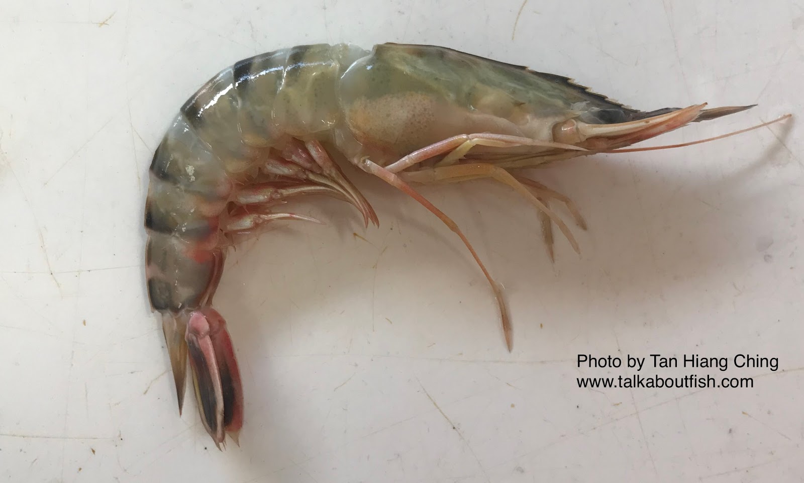Chinese Name: 斑节对虾 (Bān jié duìxiā), 老虎虾 (Lǎo hǔ xiā), 草虾 (Cǎo xiā)